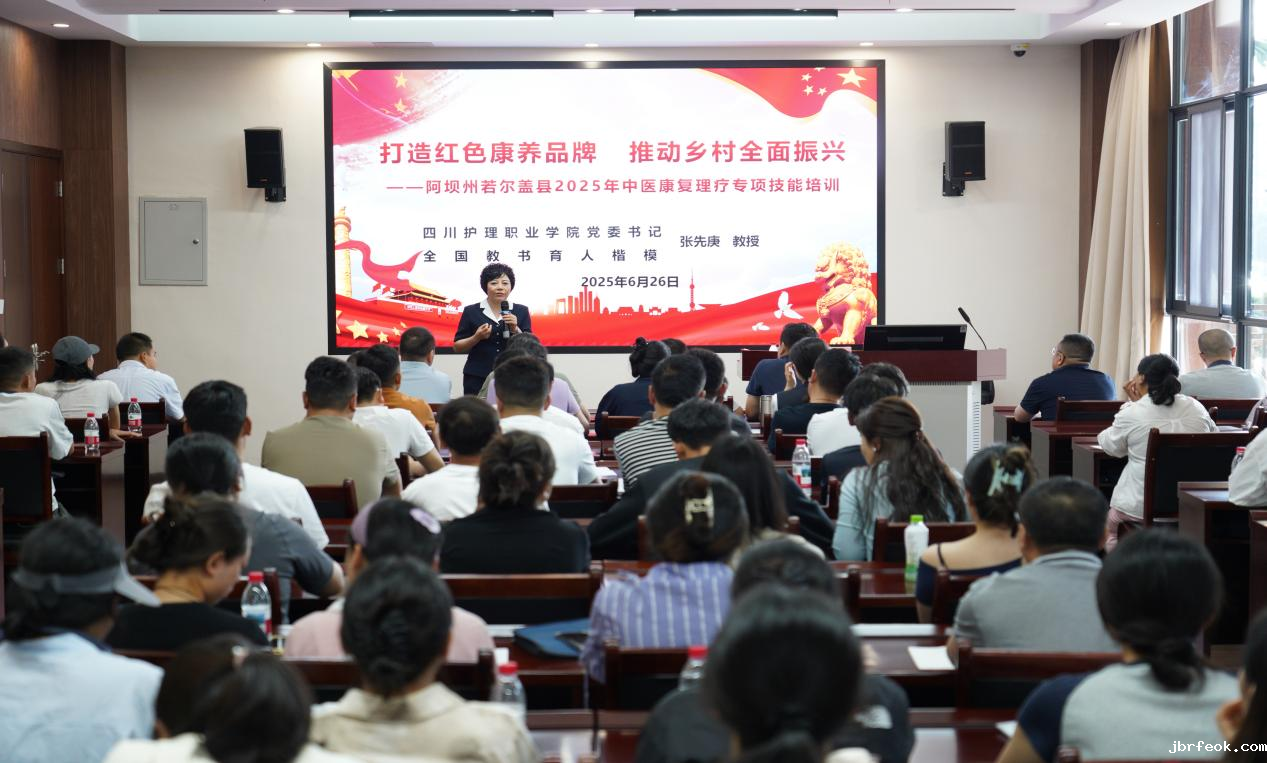 6月26日上午,学院党委书记张先庚教授在成都校区以“打造红色康养品牌 推动乡村全面振兴”为题为若尔盖县基层医务人员开展培训。