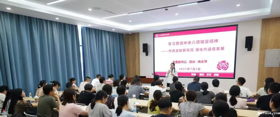 姚永萍以《大学》为切入点,聚焦新时代学院教风建设,将《大学》“格物致知、诚意正心、修身齐家治国平天下”的修身之道与落实中央八项规定精神相结合,分享了自己研读《大学》的思考与感悟。她要求,全体教职工要将中央八项规定精神转化为师德师风建设的内在动力,传承“苟日新,日日新,又日新”的创新精神,不断进行精神洗礼、品德修炼、思想提升。