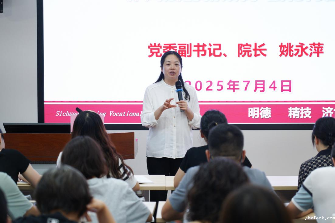 姚永萍以“四有”好老师标准为指引,结合《大学》中“大学之道,在明明德,在亲民,在止于至善”的理念,聚焦“明德 精技 济世 创新”的校训,“厚德 爱生 精进 奉献”的教风,阐释了新时代大学老师的内涵建设。她强调,教师需以“心有大我、至诚报国”的理想信念,践行教育家精神,坚守光明正大的底色,做到以生为本、以师为根、以校为家。