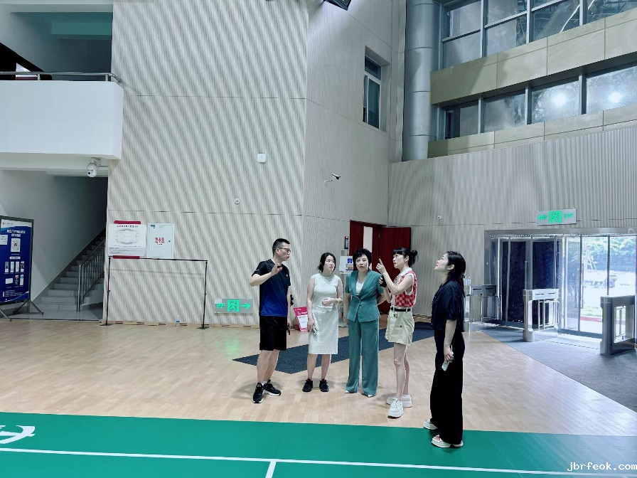 在羽毛球馆建设现场,张先庚仔细查看建设情况,详细询问场馆规划、未来开放及管理细节。她强调,高标准建设体育场馆是落实国家“体育强国”战略和“运动促健康”理念的具体行动,对丰富师生文体生活、提升健康水平、服务大众意义重大。他要求项目团队务必严把质量安全关,确保把这项惠民工程做实做好。