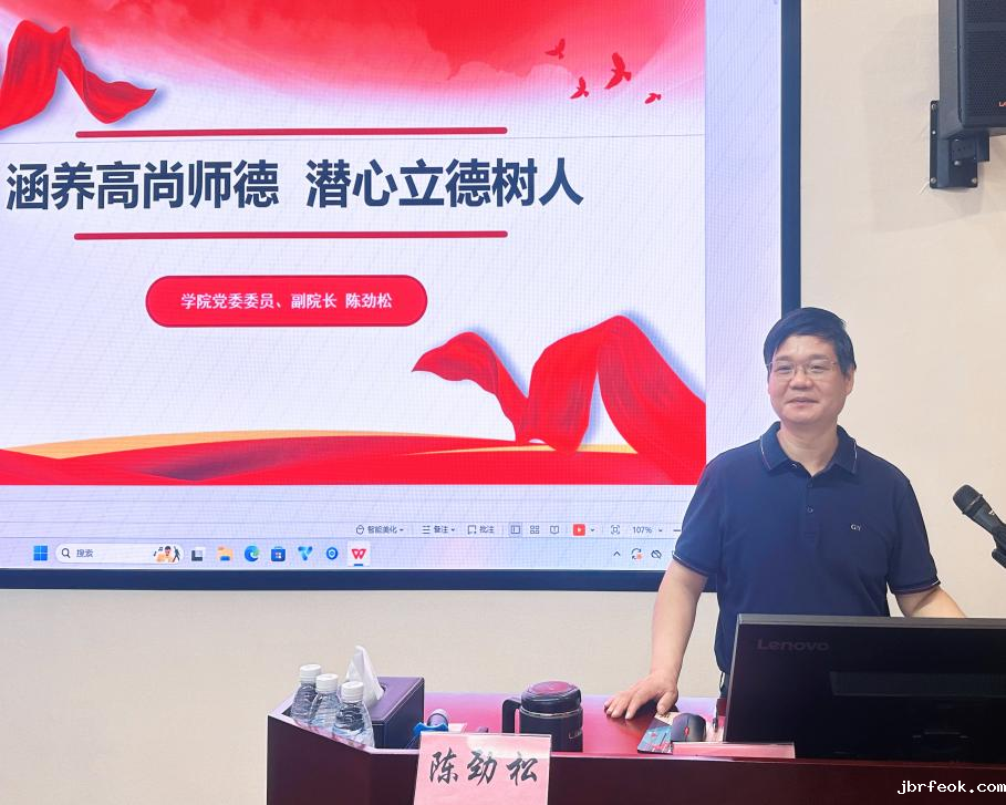 陈劲松作题为“涵养高尚师德,潜心立德树人”的专题讲座,他强调新教师需尽快完成角色转换,深入阐释高校教师与辅导员的责任和使命。他重点对师德师风重要论述与政策文件、高校教师师德失范案例、学院师德师风建设三方面进行讲解。他希望全体新教师修德明纪守纪,筑牢师德底线,不断提升能力,成长为一名新时代优秀的高校教师!