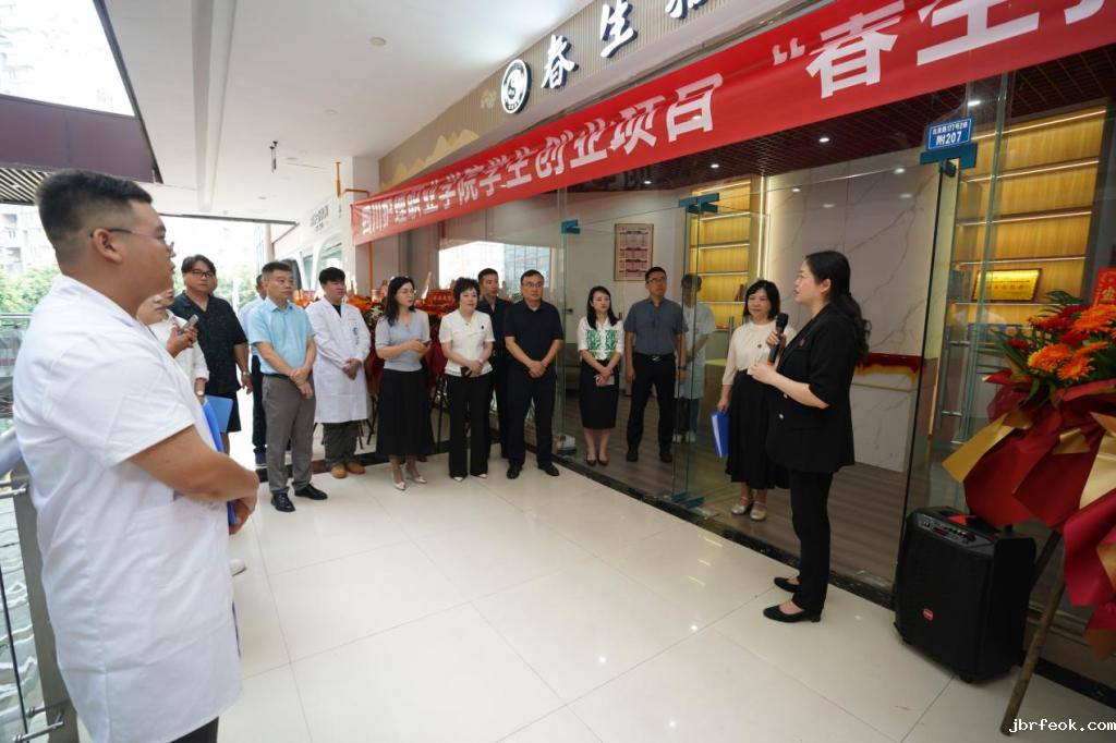 创业团队学生代表邓燎原分享了项目构思、市场调研到空间设计、服务落地的全过程。他动情地说:“‘春生推云庐’不仅是一个创业空间,更是我们用专业知识服务社会、传承中医药文化的初心践行。我们希望以川护人的温度,为社区居民带来可感可及的健康守护。”