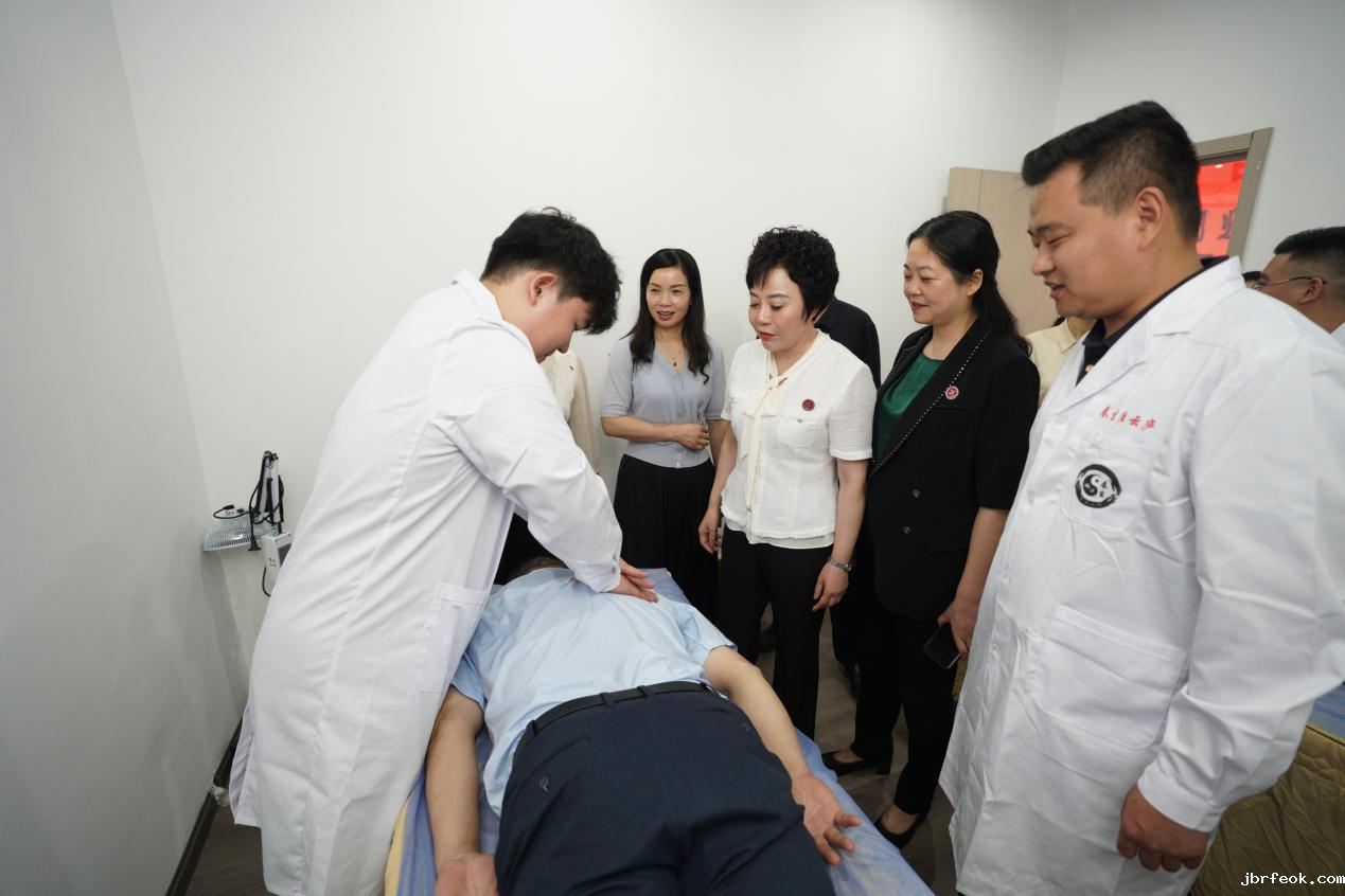 当天,领导嘉宾们进行了实地参观与现场指导。在理疗体验区,张先庚强调,“要始终把专业性和安全性放在首位,用扎实的技能赢得群众信任。”姚永萍勉励学生:“要把每一次服务都当作课堂的延伸,做到‘仁爱于心,精业于行’。”朱秀萍希望“春生推云庐”能进一步对接社区卫生资源,拓展服务半径,打造可复制、可推广的‘校地共建’健康服务样板。”