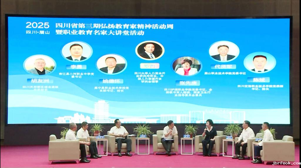 9月15日,四川省第三期弘扬教育家精神活动周暨职业教育名家大讲堂在眉山职业技术学院举行。活动以“践行教育家精神,共筑教育强国梦”为主题,由省教育厅指导,省教师发展中心、省教育融媒体中心(四川教育电视台)联合主办,眉山市教育和体育局、眉山职业技术学院共同承办。全省3万余名教育工作者通过线上平台同步收看。
