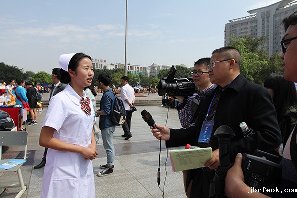 德阳市相关媒体专程到我院展区,对学院领队领导和部分学生进行现场采访,了解学院深化职业教育改革,提高育人质量的相关情况,并重点采访了学院在2016年四川省中职学校学生技能大赛项目——护理技能大赛中荣获一等奖的陈沅杰同学。