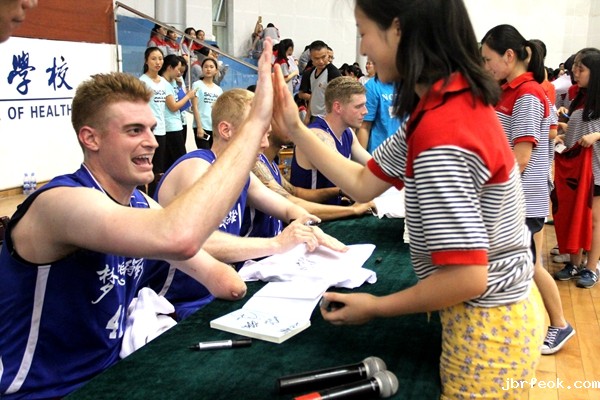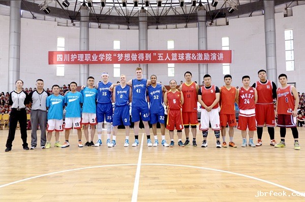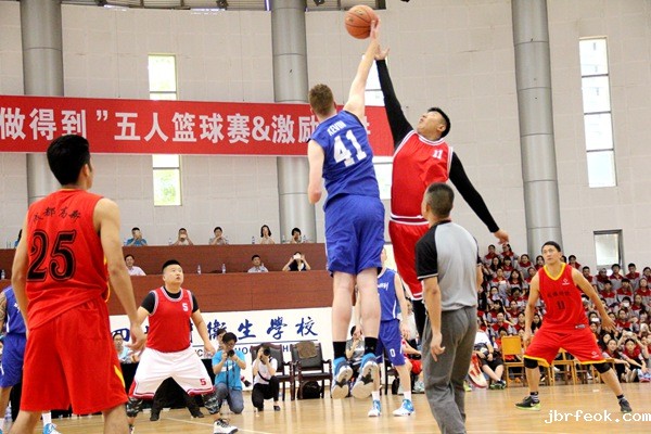 6月16日,由四川蓝剑集团和上行生活荟主办,宜宾制药有限责任公司友情赞助的2016“梦想做得到——励志成都行”走进必威betway官方入口。美国大学体育协会(NCAA)首位第一级(Division 1)独臂篮球员凯文•劳伊(Kevin Laue)携他的3位NCAA队友Brian Cahill、Anthony Ervin及Joshua Birchfield来我院开展励志活动。Kevin进行了激动人心的激励演讲,并和他的队友一起,与学院师生进行了一场精彩纷呈的篮球友谊赛。