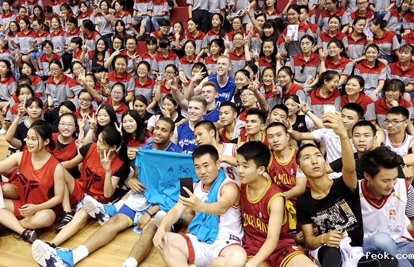 激励演讲后,Kevin和他的队友们带领梦想联队,和以我院师生为主力的川护联队进行了一场精彩的篮球友谊赛。比赛高潮迭起,Kevin精准的单手远投、及时的封盖抢断,果断有力的灌篮和双方队员的精采表演,让整个赛场为之沸腾。