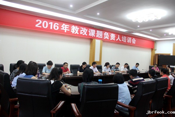 6月27日下午,2016年批准立项的院级教学改革课题负责人培训会在学院综合楼二楼会议室举行,由学院院长张先庚教授主讲,陈劲松校长、姚永萍副校长及20多位教改课题负责人参加培训,此会由学校党委副书记钟海主持。
