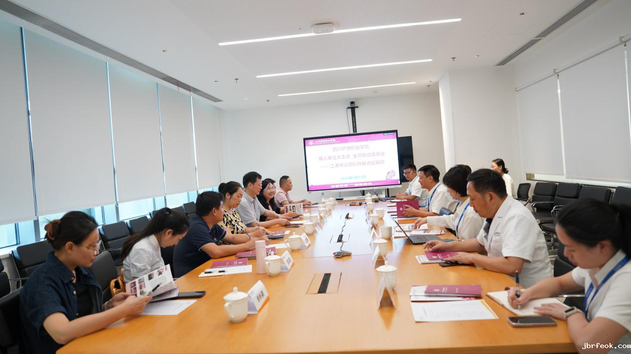 江涛就学院基本情况进行简要介绍,并对医院的硬件建设、人性化的服务理念、精细化的管理给予了高度评价。他表示,通过本次调研交流,一是深入了解了医药卫生领域社会办医的发展新趋势,不断探索学院办学育人的新方向;二是为学院人才培养增设优质实习基地,积极推进校企深度合作,建立长效人才培养机制,实现医院、学院、学生三方共赢;三是深入推进“访企拓岗”工作,加强校企合作,助力学院毕业生更高质量、更充分就业。