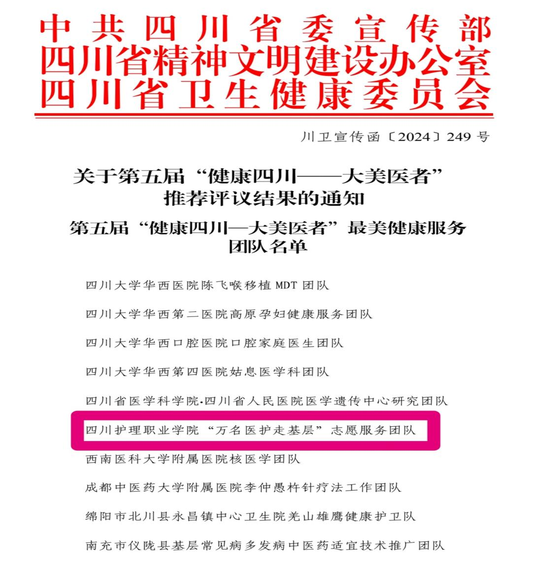 此次评选经推荐申报、初评审核、综合评审、公示等程序,全省共推荐评议出10个“健康四川—大美医者”最美健康服务团队,5个“健康四川—大美医者”医路先锋团队,20位“健康四川—大美医者”个人。