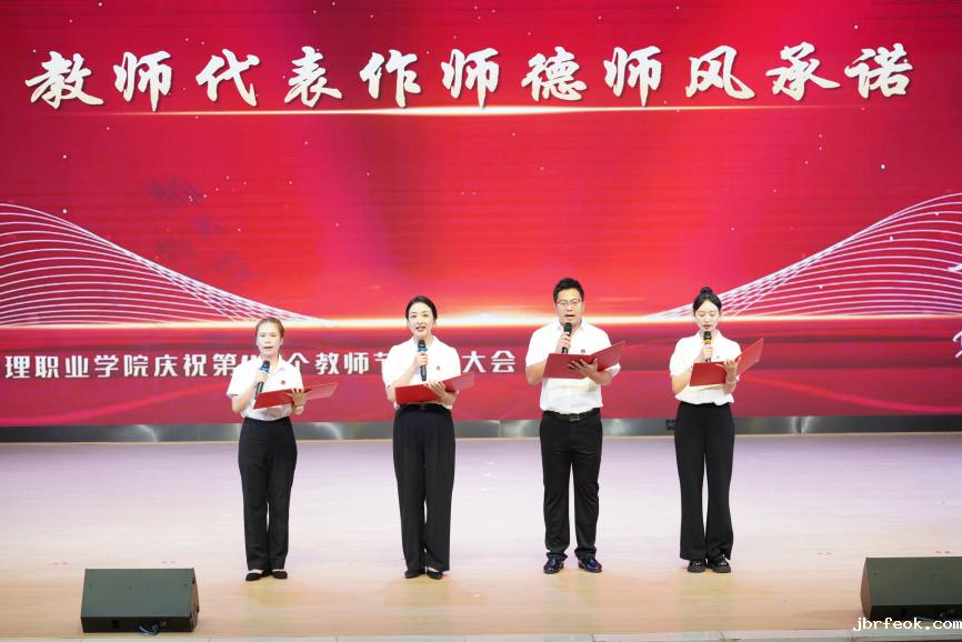 4名新入职教师代表全体教职员工作师德师风承诺。