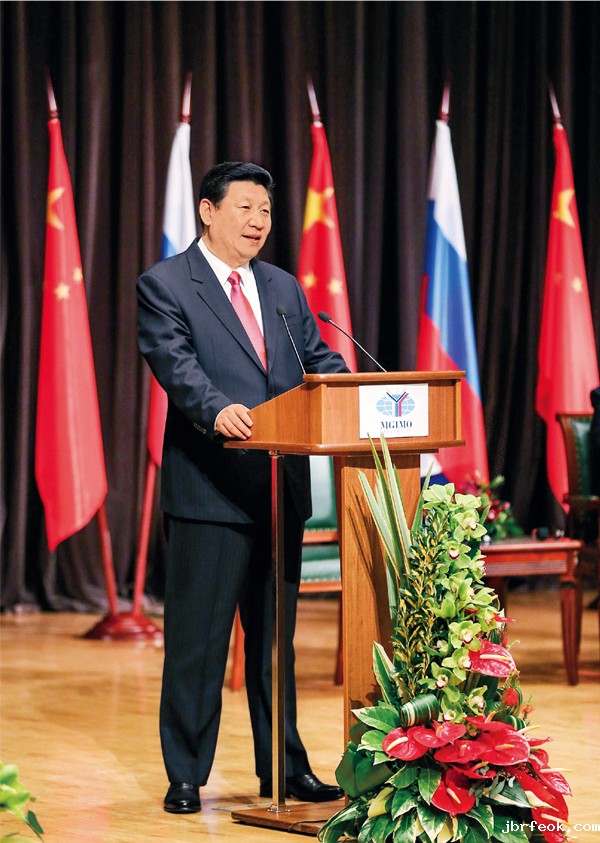 2013年3月23日,国家主席习近平在莫斯科国际关系学院发表演讲。新华社记者 丁林/摄