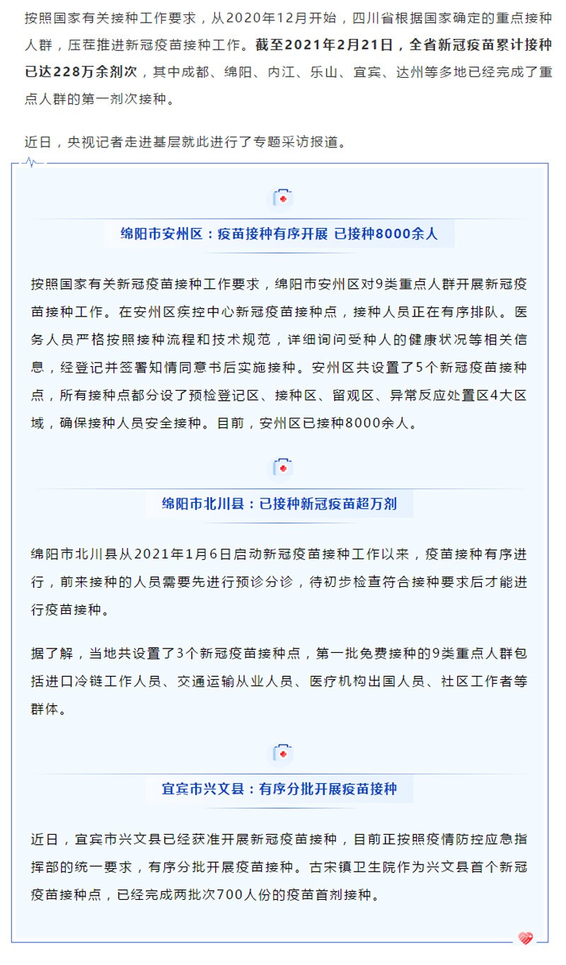 四川多地完成重点人群第一剂次新冠疫苗接种