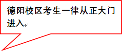 1.考试期间,成都校区校外考生均从北门进入(详见成都校区地图),德阳校区考生从正大门进入;考生在校门需按保安要求查验身份,进入考区后及时到达指定考场,考试结束后有序离场。