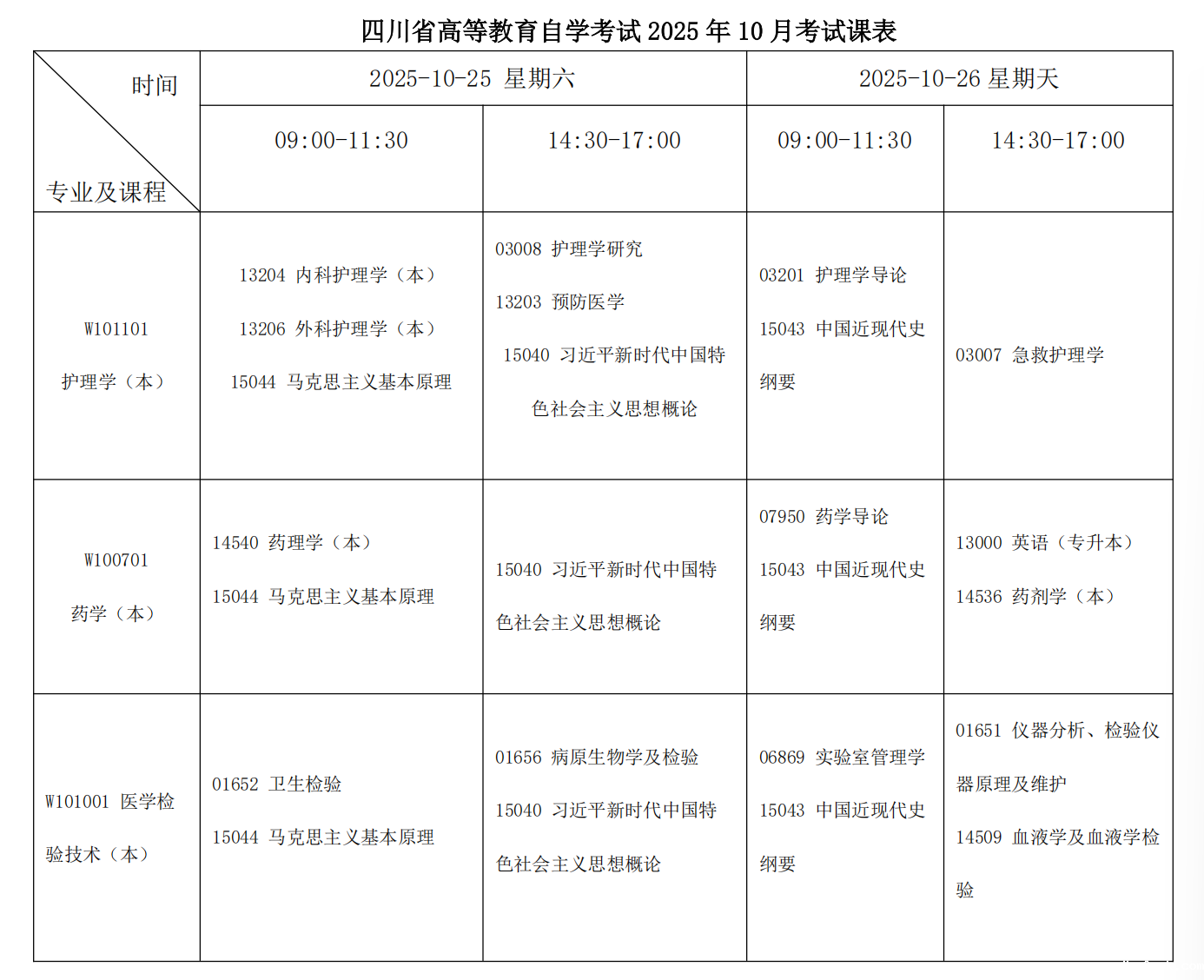 2023年10月至2025年9月为新旧考试计划过渡期,2025年10月起全面执行新考试计划。自2025年9月起注册的新生,按新考试计划报考,无需进行课程顶替。在籍考生(过渡期内未毕业)可在8月下旬完成课程顶替后再进行报考,自考考生课程报考前务必仔细查询个人考籍,核对专业计划,审慎报考,相关事宜另行通告。课程顶替相关规则详见《关于公布高等教育自学考试专业考试计划(2025年版)及相关事项的通告》查询网址:https://www.sceea.cn/Html/202507/Newsdetail_4372.html。考试课表及教材可点击链接https://chaxun.sceeic.cn/查看。
