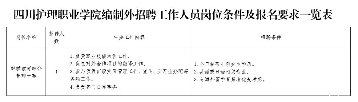 学院现因工作需要,拟编制外招聘1名工作人员。
