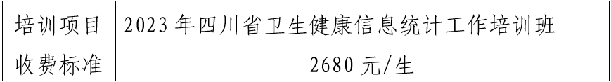 现将“2023年四川省卫生健康信息统计工作培训班”收费公示如下:
