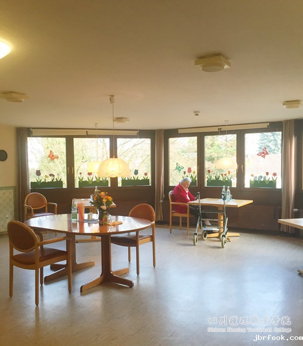 一个多月的学习之后,进入到一个多月的养老院实践。在养老院的实践期间,让我体会到了不一样的工作环境,了解到当下德国的养老护理,的确处于人员匮乏的阶段。在这之前,我以为一个护理员只负责一两个老人的生活起居及日常活动,去过之后发现,远远不如自己想的那样轻松,当然,也还是没有国内医院的那种马不停蹄的忙碌状态。一个科室会有20-30个老人,有部分可自理的老人,有完全自理但还是需要帮助的老人,也有完全不能自理的老人。每天早上六点十五到下午两点,会有3、4个护理员上班,每个护理员每天负责7、8个老人的生活起居护理,下午两点到晚上九点会有2、3个护理员上班,晚上九点十五到次日凌晨一般有2个护理员,夜班属于自愿申请,工资也是不菲的。早班和晚班的护理员中至少有一个是Pflegefachkraft(相当于每天的领班),因为只有这个职称的人才可以负责药品的分发,血糖测量和肌肉注射。德国的医疗制度完善,基本每一个人都会有一个家庭医生(掌握所有你的健康资料),所以在养老院是没有固定的医生的,所有老人的药都会由药店每周送来,单独小包分装好,然后每天按照时间段分发即可。老人每天都会被组织到一起做各种各样的活动,每个星期的每一天都是一样的,对于我来说,这些活动还是有些无聊的,不过这也跟德国人死板恪守的性格有关,从幼到老,每个年龄阶段的人,让我感受不到一点活力,所以养老院很多老人基本上都有老年痴呆。从这一点来说,我觉得中国老人的心态要好很多。