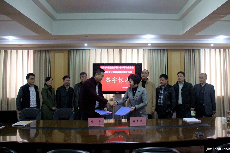 2016年11月14日下午4点,在龙泉校区三楼会议室举行了德阳校区3号、4号学生宿舍和1号学生公寓建设项目施工合同签订仪式,学院法定代表人、院长张先庚教授与施工单位(德阳市建业建筑工程有限公司)法定代表人程勇董事长在合同上签字。学院基本建设领导小组成员与施工单位项目经理等一同见证了这一历史时刻,标志着该项工程即将进入实质性施工阶段。