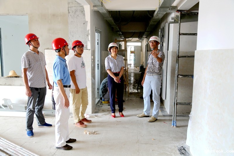 张院长顶着烈日仔细察看了项目区域总平铺装,1号学生公寓室内外工程进展、施工工艺细节、走道与室内效果等,检查了3号4号学生宿舍卫生间防水、洗漱台材质与安装质量,探讨了学生使用的方便程度与竣工验收工作等。