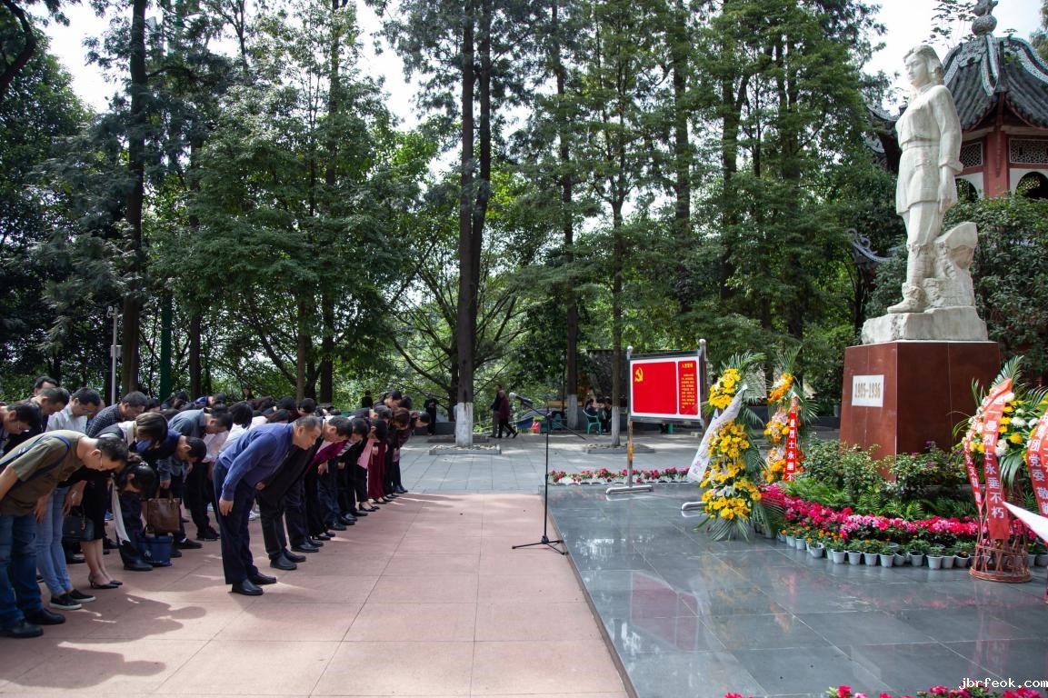 在纪念馆广场赵一曼雕像前,江涛、张先庚带领大家庄严肃立,齐唱国歌。向赵一曼雕像集体鞠躬致敬,缅怀赵一曼同志。随后,江涛带领大家面向党旗,举起右拳,以铿锵有力的声音重温入党誓词。