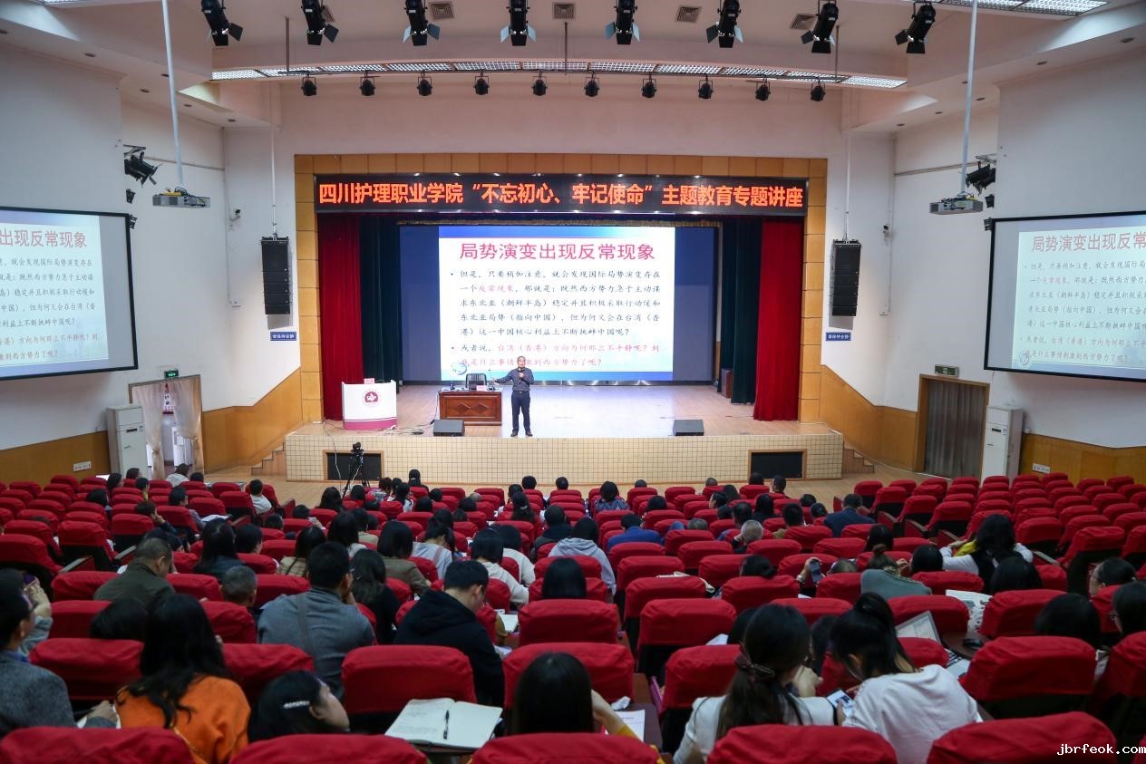 2019年10月11日,学院“不忘初心、牢记使命"主题教育专题讲座在成都校区学术报告厅举行,学院领导、中层干部和全体党员参加学习,讲座由江涛书记主持。