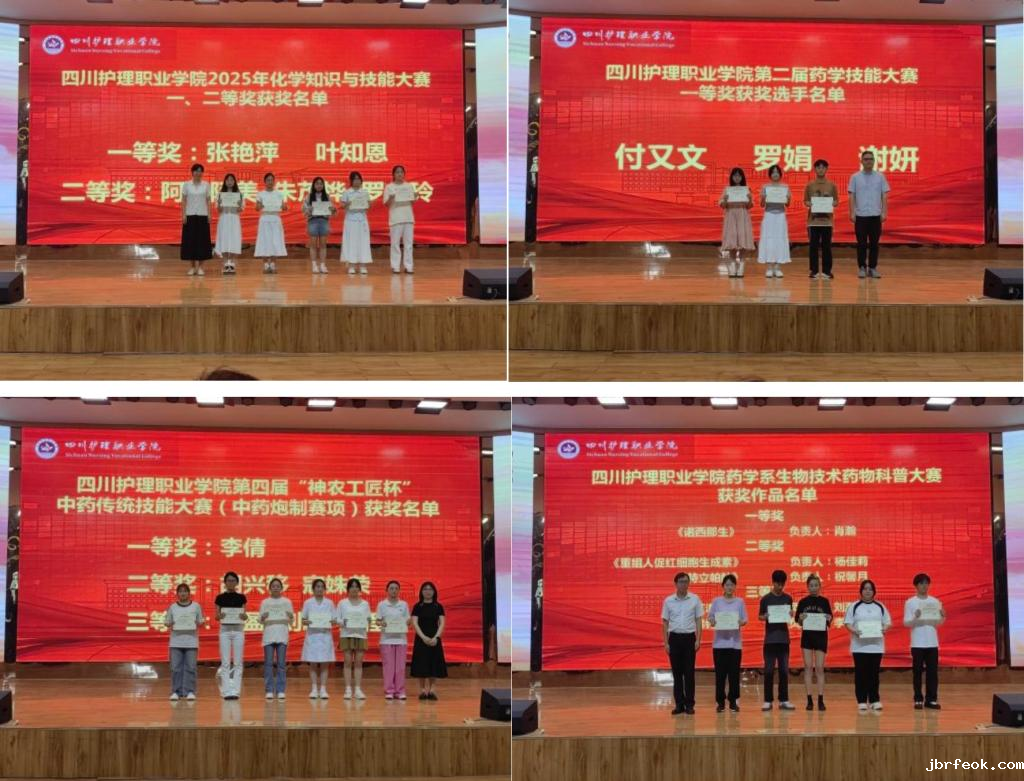 6月12日,药学系在德阳校区举行2025年专业技能大赛颁奖仪式,为近两个月举办的第四届“神农工匠杯”中药传统技能大赛、第二届药学技能大赛、首届化学知识与技能大赛和生物技术药物科普大赛等四大赛项画上圆满句号。系党总支书记施晓莉、副主任徐曾涛,赛项负责教师及获奖学生代表齐聚一堂,共同见证荣耀时刻。