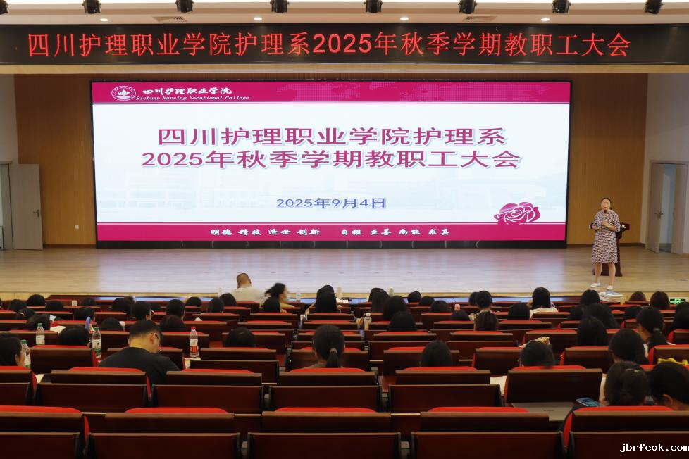 9月4日,护理系2025年秋季学期教职工大会在德阳校区演艺厅举行,全体教职工参加会议。会议由护理系主任邓小利主持。