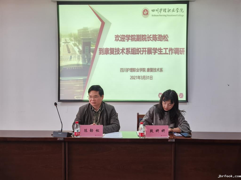 为了加强和规范我院学生管理工作,切实落实“三全育人”机制,全力营造良好育人环境,促进学生健康成长, 2021年3月31日,学院党委委员、副院长陈劲松到康复技术系开展学生工作专题调研,康复技术系主任陈燕彬、康复技术系党总支书记黄萍和全体专兼职辅导员参加调研会。