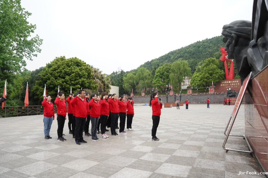 “我志愿加入中国共产党,拥护党的纲领,遵守党的章程,履行党员义务,执行党的决定……”在红军渡塑像前,全体党员举起右拳,面对党旗,重温入党誓词。