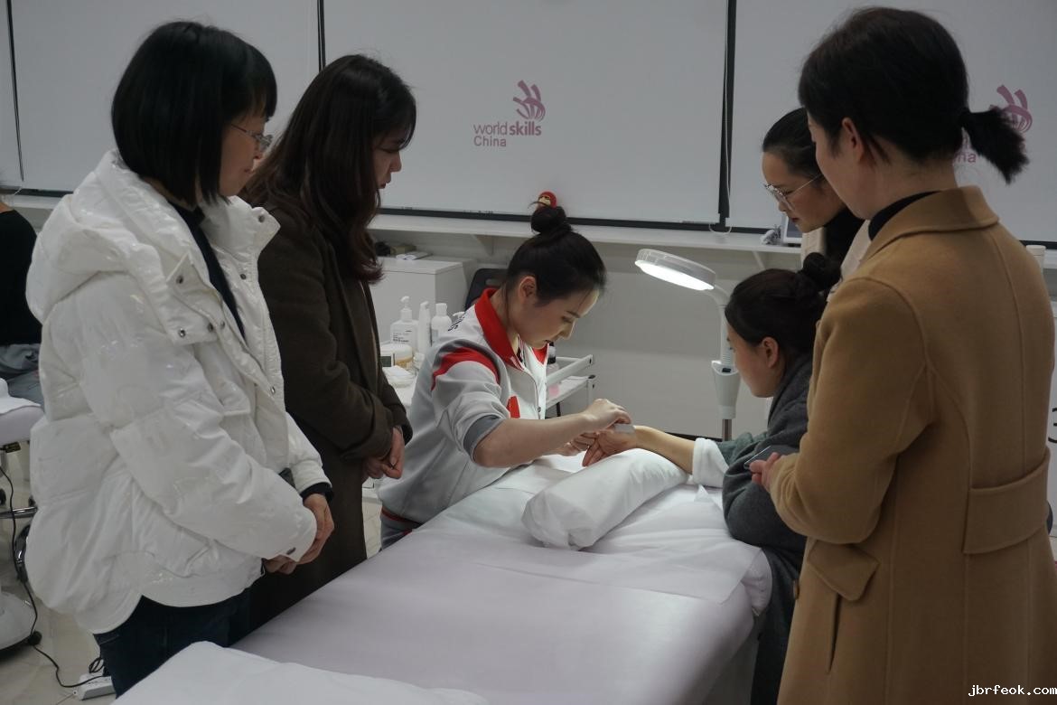 随后,在世界技能大赛美容项目中国专家组组长王芃及第45届世界技能大赛美容项目银牌获得者、世界技能大赛美容项目教练李真芹的陪同下,参观了世赛美容训练基地,并现场观摩了世赛选手的训练。