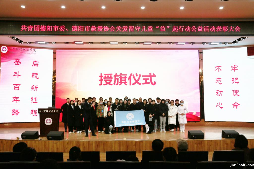 为积极响应党的十九大报告中关于志愿服务的相关精神,广泛宣传典型在青年学生中的示范作用,2021年12月19日下午,护理系党总支辅导员党支部携手德阳市救援协会,共同举行共青团德阳市委、德阳市救援协会关爱留守儿童“益”起行动公益活动表彰大会暨志愿服务队授旗仪式。