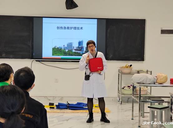 针对创伤现场救护,曾学燕老师详细讲解了创伤止血、包扎、四肢骨折现场固定、转运的主要方式与注意事项,同时重点介绍了心肺复苏的步骤及自动体外除颤器(AED)的使用方法。