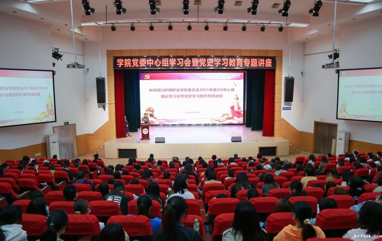 为扎实推进党史学习教育,2021年4月15日,学院举办2021年第2次党委中心组理论学习会暨党史学习教育专题讲座,邀请四川省委党校任春艳教授到成都校区现场授课。省卫生健康委机关党委书记、党组成员张涛莅临指导。讲座由学院党委书记江涛主持。