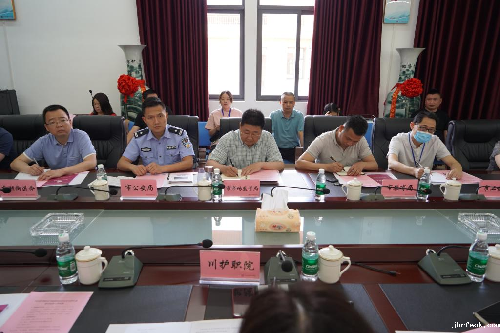 随后,双方召开了校园食品安全守护行动座谈会。会议由德阳市市场监管局餐饮科王冬梅主持。学院党委委员、省卫校副校长、德阳校区管委会主任卢燕详细介绍了校园周边的食品安全隐患和困扰,希望相关部门能给予支持和解决。针对学院周边临时市场食品安全管理问题,东湖街道办介绍了对该市场的管理情况,旌阳区和经开区市场监管局分别对该市场检查情况和校内食堂情况进行详细介绍,提出指导性意见。旌阳区市场监管局表示将持续加强市场监管力度,采取高压措施,确保市场食品安全。