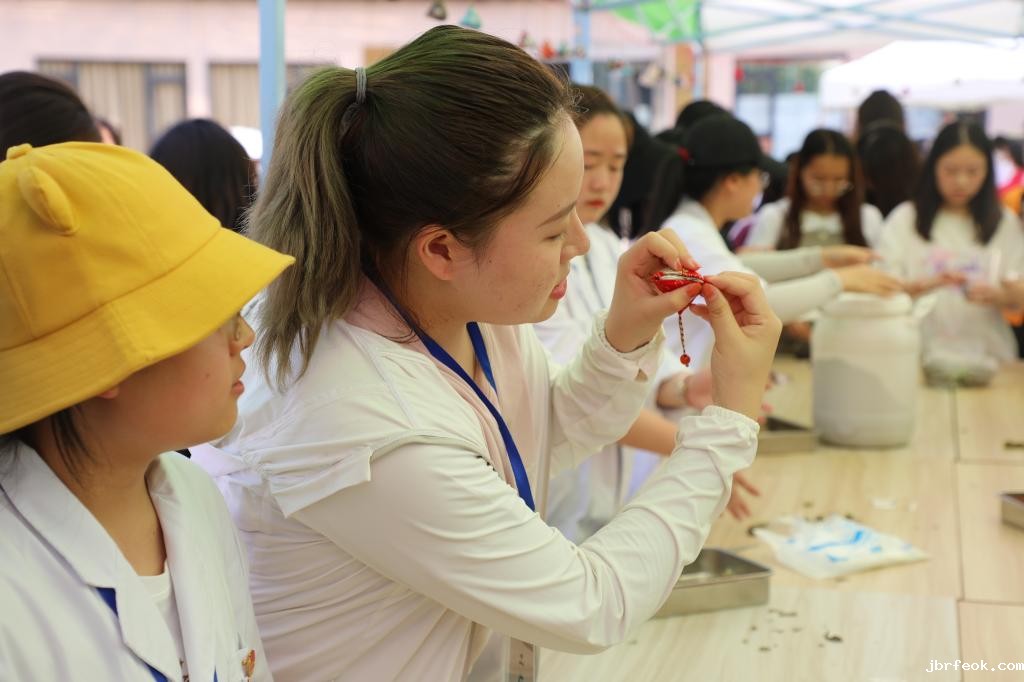 下午四点,活动正式拉开帷幕。本次体验活动涵盖中药香囊制作、滴胶制作、中药研磨、大山楂丸制作、中药饮片展示及药用植物标本展示六大主题板块。师生在动手体验中感受中华传统医药文化的乐趣,感受到中医药学习的魅力。在拓宽专业视野的同时,提升学生对中医药文化的认同感进而增强其专业自信及文化自信。