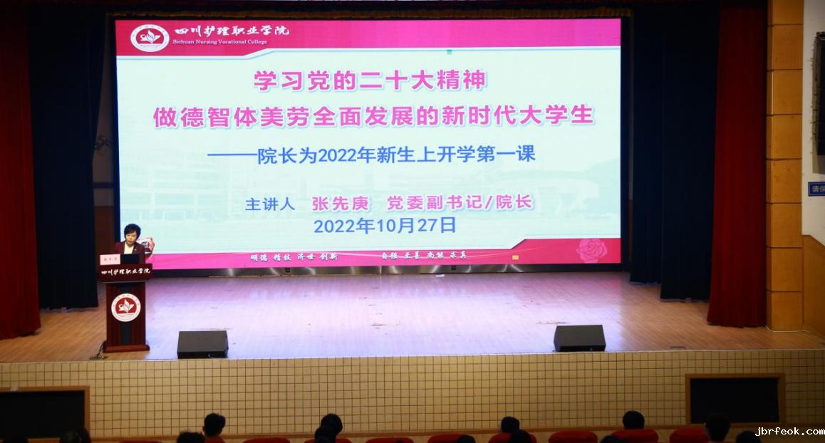 在2022级新生开学第一课上,张先庚院长为全校学生、学工部领导老师、各系书记和全体辅导员做了题为《学习党的二十大精神 做德智体美劳全面发展的新时代大学生》的专题宣讲,全面系统、重点突出、深入浅出的解读了党的二十大精神。她指出,党的二十大报告对广大青年提出了“立志做有理想、敢担当、能吃苦、肯奋斗的新时代好青年”的期望和要求。广大青年学子要深刻领会,树立为祖国为人民生命健康事业赤诚奉献的坚定理想和永久奋斗的家国情怀,勇于担当尽责,始终埋头苦干,矢志拼搏奋斗,做德智体美劳全面发展的高素质卫生健康大学生。