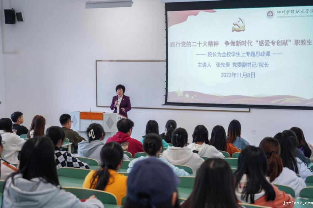 在思政老师集体备课会上,张院长要求及时更新教学内容、创新教学方法,让党的二十大精神带着热气进课堂。同时,她还带头为全校师生作多场专题思政课讲座,将党的二十大精神融入思政课,用青年师生听得进、听得懂的语言,乐意听、记得牢的方式推动党的二十大精神进课堂,并融入学生的日常学习和生活中。