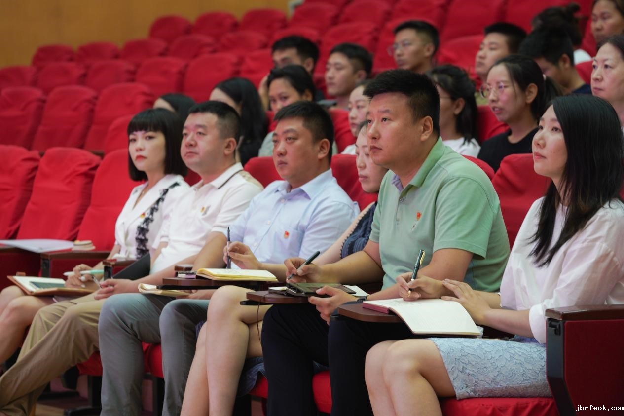 为深入学习贯彻党的二十大精神,高质量推动主题教育走深走实,进一步强化民族地区基层医疗卫生人员使命担当,学院思政部党总支、健康培训中心党支部和民族地区中心卫生院骨干人员培训班临时党支部在“七一”建党节前夕联合开展“扎根基层 践行使命”主题党日活动。活动邀请学院党委书记江涛讲授题为“扎根基层 践行使命——做民族地区群众健康的守护者”的专题党课。思政部、健康培训中心全体党员,青年理论学习第五小组成员,民族地区中心卫生院骨干人员培训班全体学员参加会议,本次会议采取“线上+线下”的形式开展。