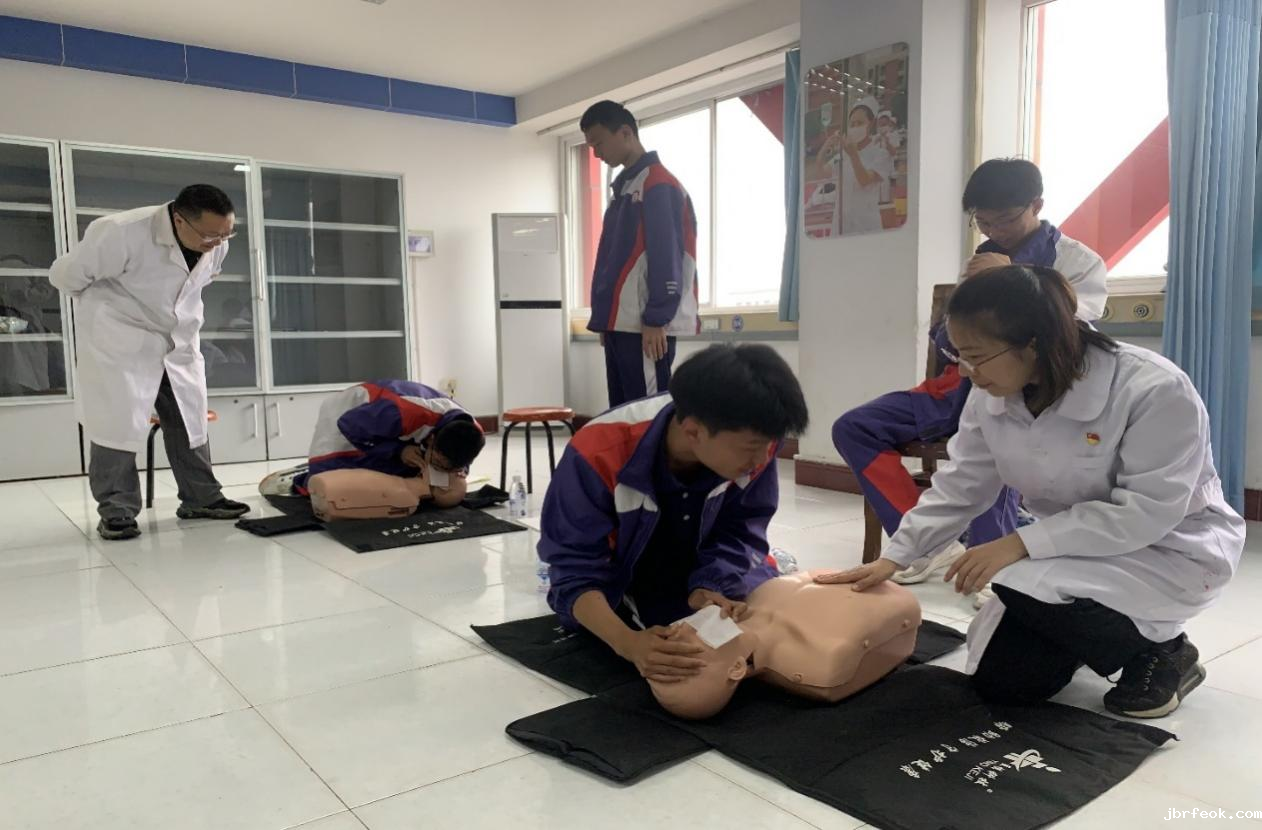 活动现场,全科教研室陈柯如老师开展急救知识科普培训。她详细生动地讲解心肺复苏CPR及自动体外除颤器AED的基本操作步骤和注意事项,耐心细致地示范操作。老师们分组带领龙泉第二中学学生利用模拟人进行操作练习,讲述每一步的动作要领,纠正每一个学生的动作。