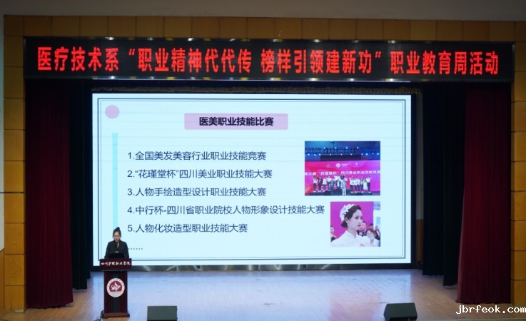 为深入贯彻落实党的二十大精神和习近平总书记关于职业教育的重要指示批示精神,传承技能成才、技能报国的时代风尚,营造“崇尚一技之长”的浓厚校园氛围,5月25日,医疗技术系在成都校区学术报告厅开展“职业精神代代传 榜样引领建新功”职业教育周活动。校外行业专家、医疗技术系全体师生参加活动。