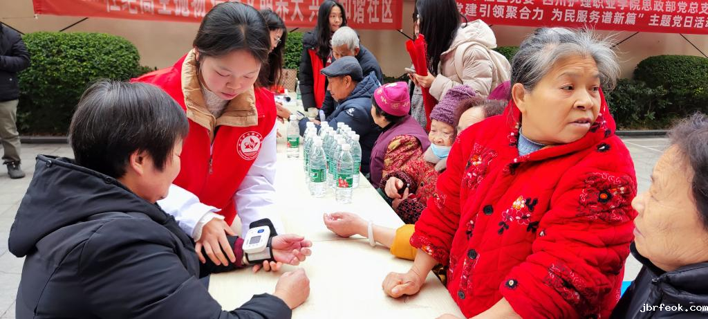 本次主题党日活动在兴唐·中心城小区广场拉开帷幕,内容丰富多样:党支部杨梅用通俗易懂的语言宣讲了党的二十届三中全会精神;医疗技术系学生结合老年人常见的白内障、青光眼等眼部疾病开展了健康用眼知识科普;康复技术系教师严茜带领社区居民活动筋骨,练习传统功法;最受欢迎的党史知识有奖答题、保健按摩和血压测量环节,居民们参与度高,活动受到社区居民的广泛赞誉。